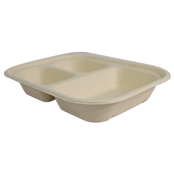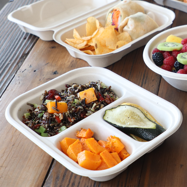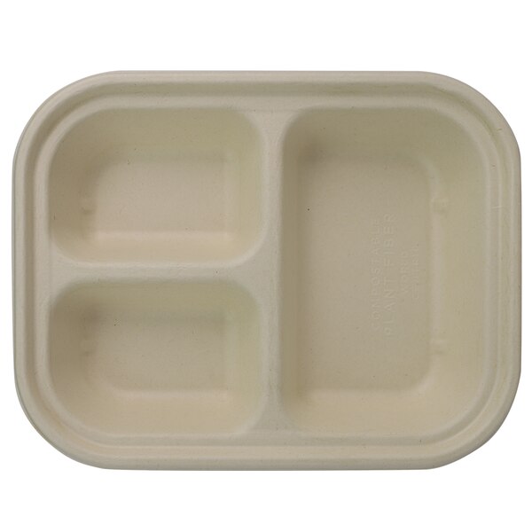 Also available as a pack of 50, SKU: TR-SC-U10T-LFP-P. Pairs with lids: TRL-CS-10T, TRL-SC-10-LF, and TRL-CS-10. World Centric® 10x7.5x2” 29 oz fiber containers are made from bamboo and unbleached plant fiber, an annually renewable resource and contain no added PFAS. Great for hot or cold food, these takeout containers are compostable, durable, grease and moisture resistant, freezer safe, and have no wax or plastic lining. They are certified compostable in a commercial facility, which may not exist in your area.