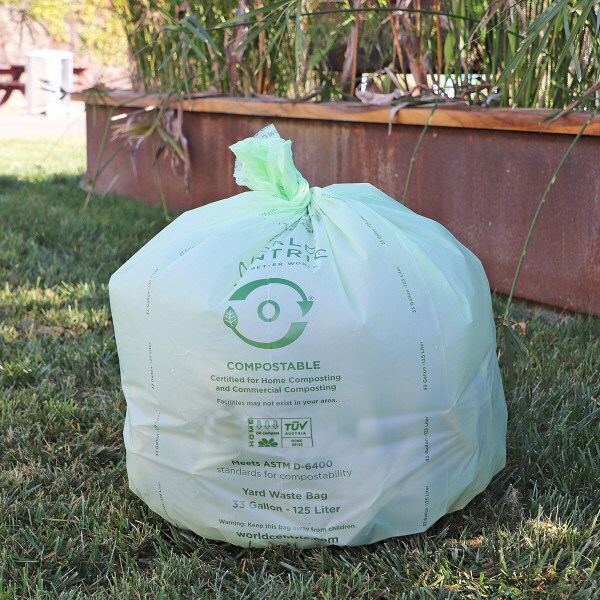 World Centric® compostable lawn and leaf bags are made from a blend of biodegradable synthetic plastic, PBAT, and corn starch. This heavy duty liner is 1 millimeter thick, making it durable for collecting yard clippings or other heavy material at home or in a commercial setting. These bags have an expected shelf life of 12 months and should be stored away from heat sources, direct sunlight, and moisture. Create a positive impact by choosing World Centric® compostable products today!